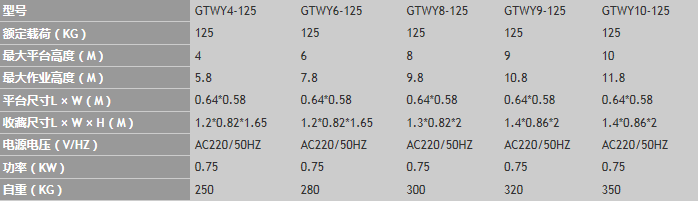 2. 該系列最大平臺(tái)高度4M、6M、8M、9M、10M